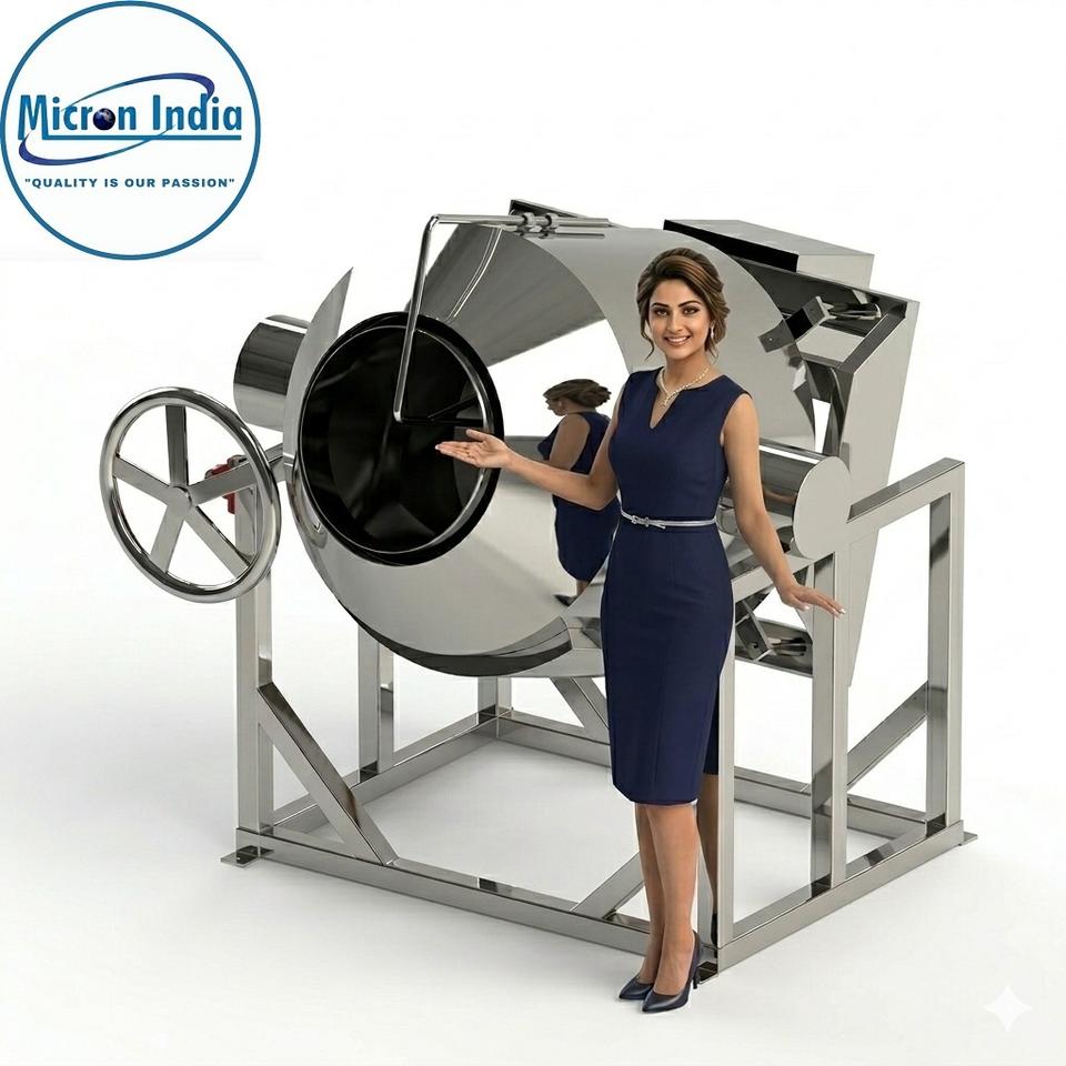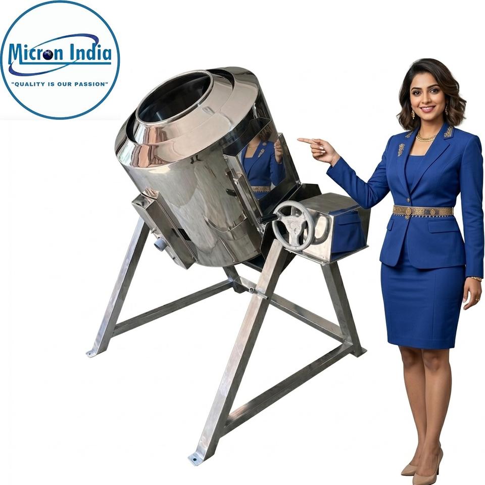 Machine de revêtement rotative automatique en acier inoxydable Micron India pour noix et grains de café, fonctionnant au GPL, usage intensif