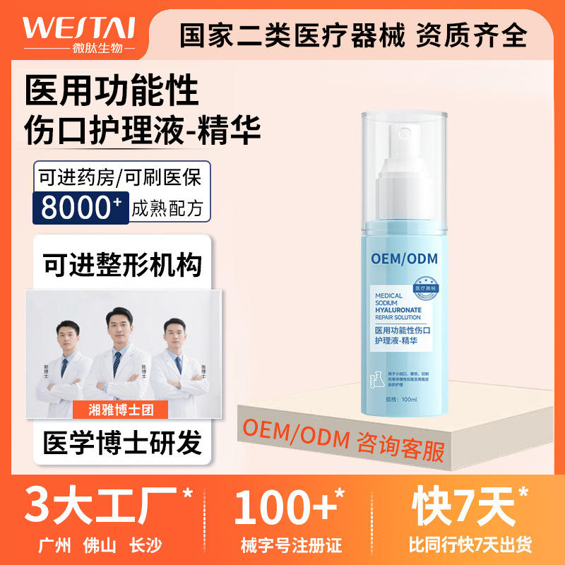 Solution réparatrice micropeptide bio-médicale à l'hyaluronate de sodium 100 ml pour les blessures mineures et les soins de la peau