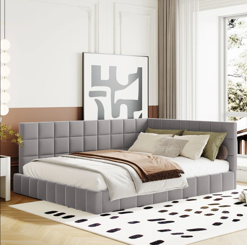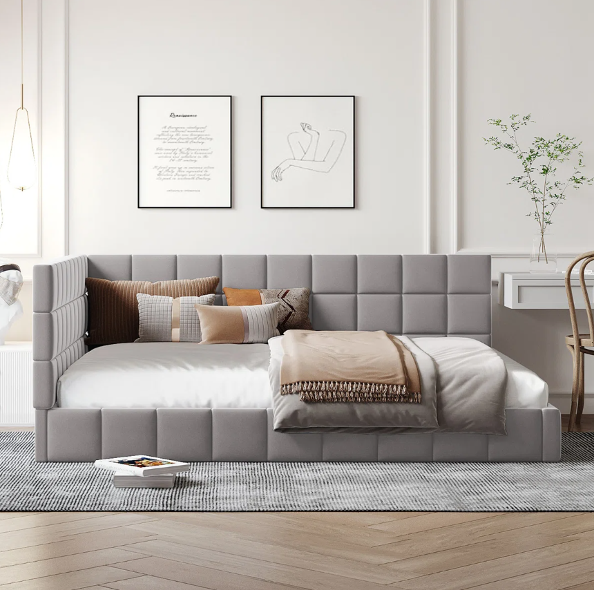 Nom du produit:Lit de jour capitonné carré de sofa de taille de double de velours gris