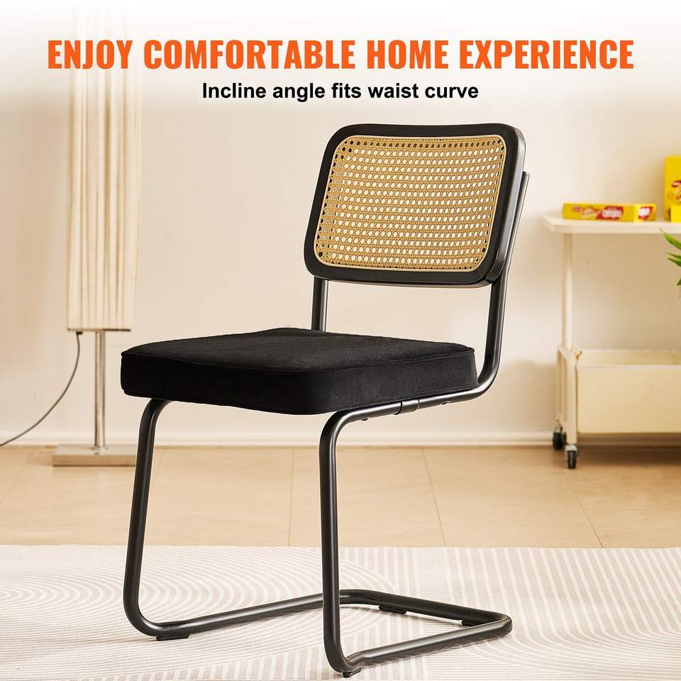 Ensemble de 4 chaises de salle à manger en rotin de style Mid-Century Modern, chaises d'appoint rembourrées en velours avec dossier en rotin rétro