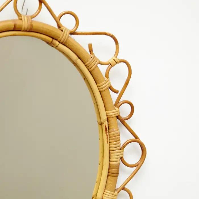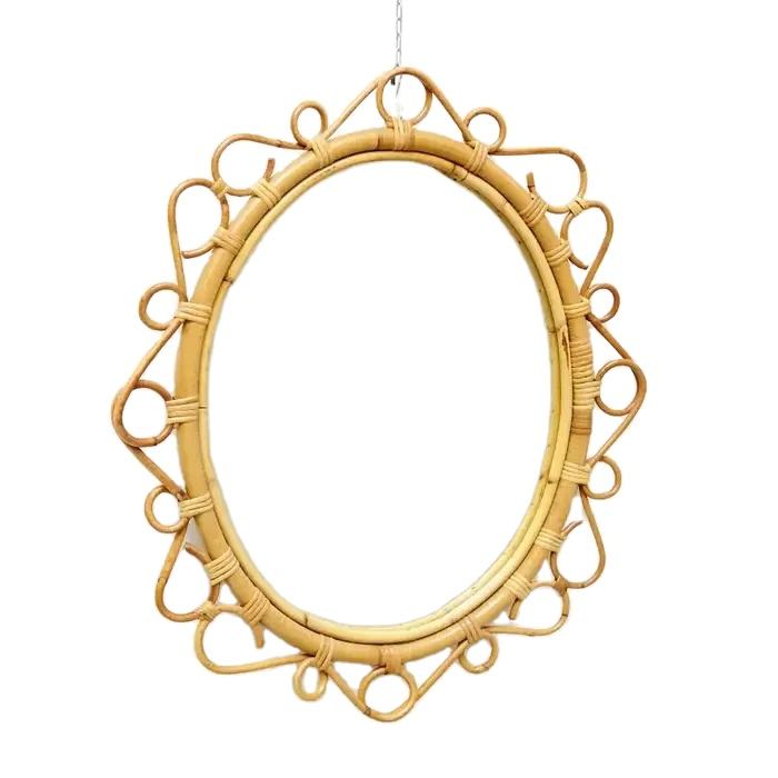 Miroir en rotin à grand arc ovale de luxe moderne du milieu du siècle décor de cadre vintage pour le salon
