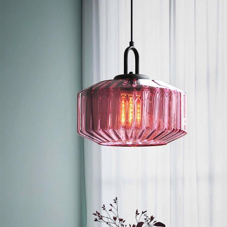 Mid Century Modern Pendant Light Fixtures Glass Globe with Hand Blown Purple Glass Shade Vintage Hanging for Dining Room Kitchen