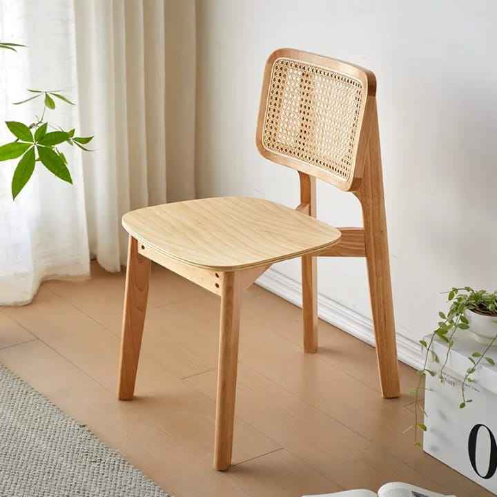 Fauteuil en rotin de style Mid-Century Modern, structure en bois massif à pieds en V, siège artisanal de designer, idéal pour hôtels, restaurants et salons professionnels