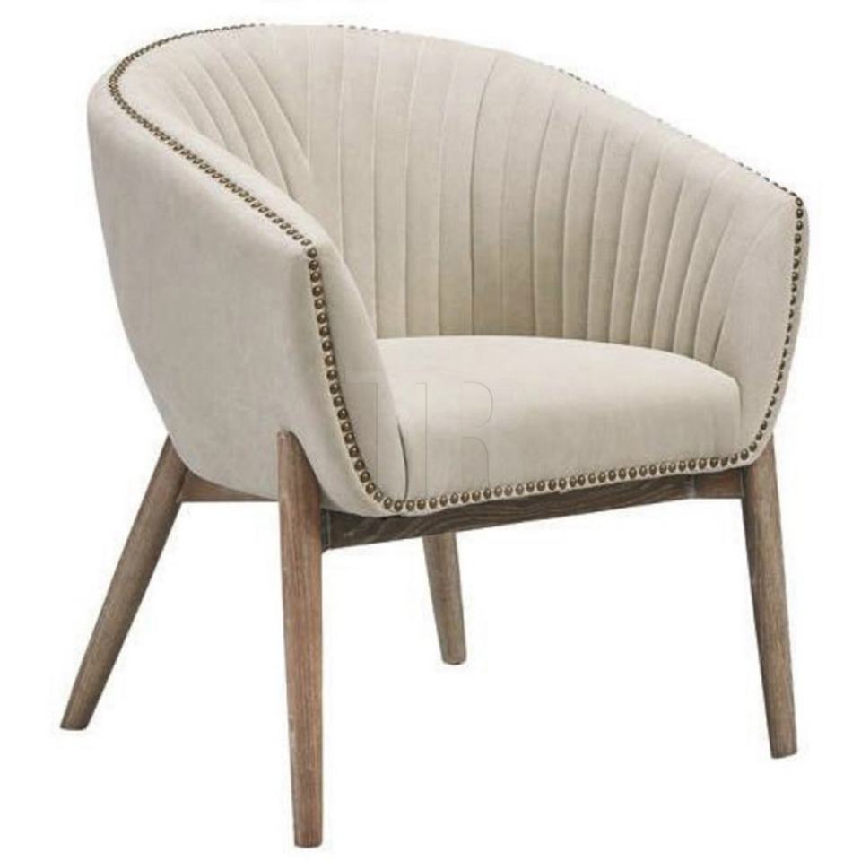 Nom du produit:Chaise de salle à manger avec revêtement en lin neutre et garniture de clous en laiton antique