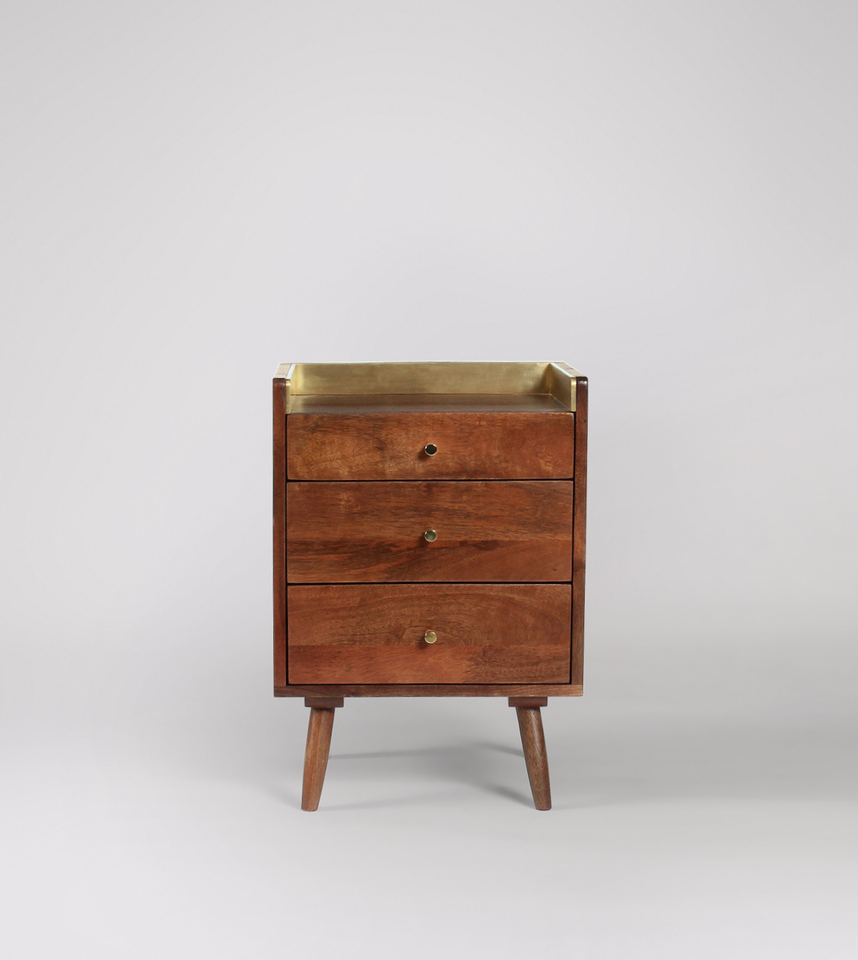 Table de chevet style Mid-Century en noyer avec détails en laiton