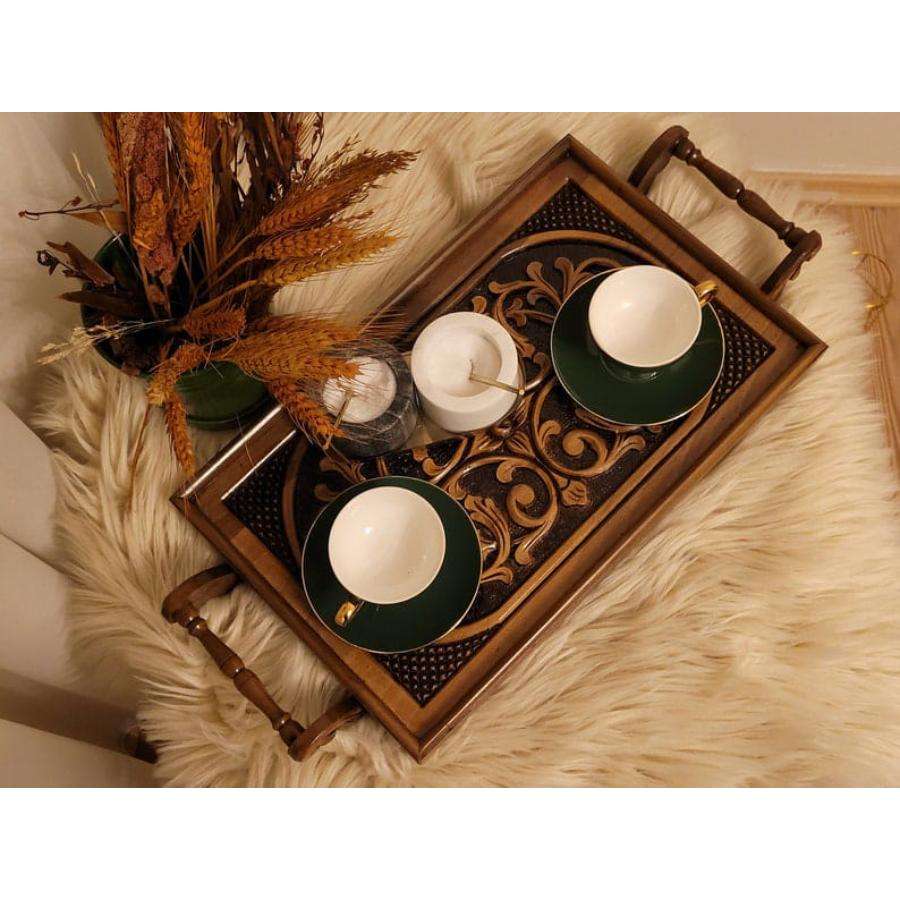 Plateau de service en bois de style du milieu du siècle avec poignées plateaux de petit-déjeuner portables légers et faciles plateau ottoman de vente chaude d'Inde