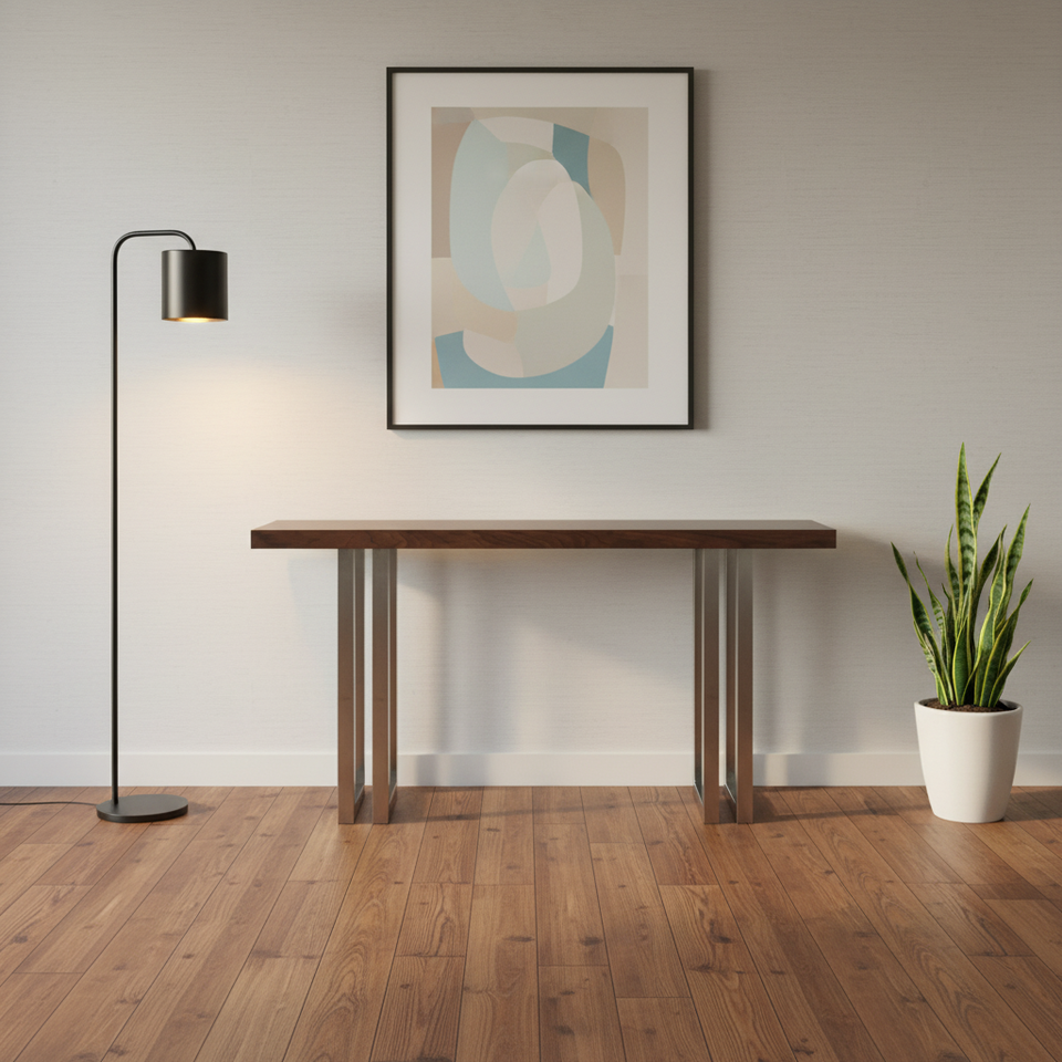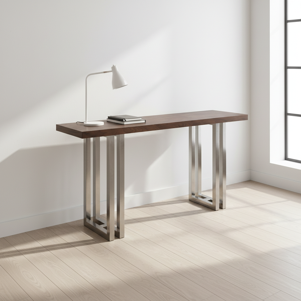 Table console en noyer de style moderne du milieu du siècle, base géométrique, 40 pouces, table d'entrée, table d'appoint pour salon, couloir, meubles d'intérieur