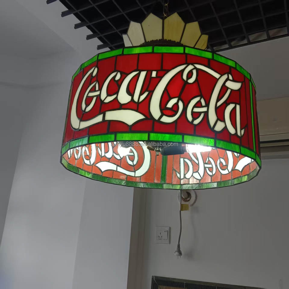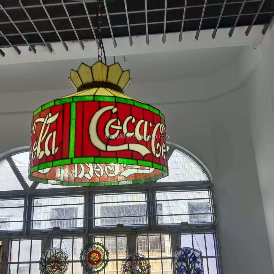 Abat-jour cylindrique Tiffany artisanal en verre teinté rouge de 16 pouces, style européen, lampe suspendue à économie d'énergie, ampoule E27, salle à manger
