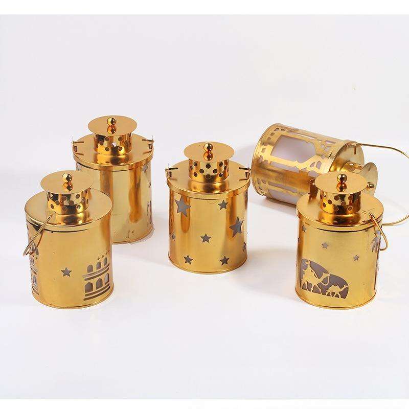 Lanterne de petite taille en forme de château du Moyen-Orient, décoration de festival des lanternes, lampe à vent dorée ajourée, Ramadan, alimentée par batterie, bougie LED