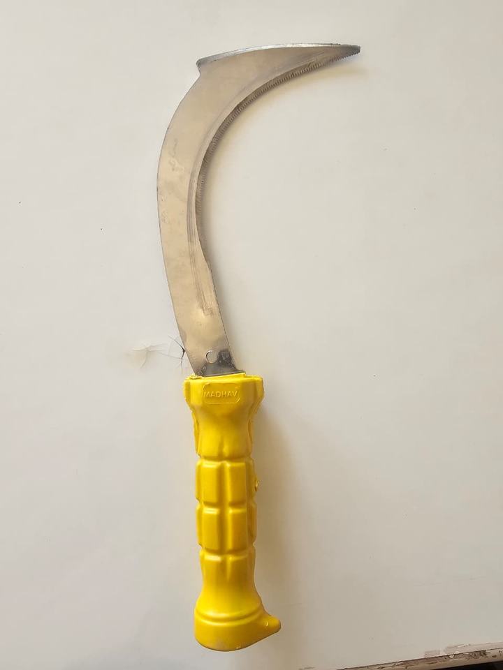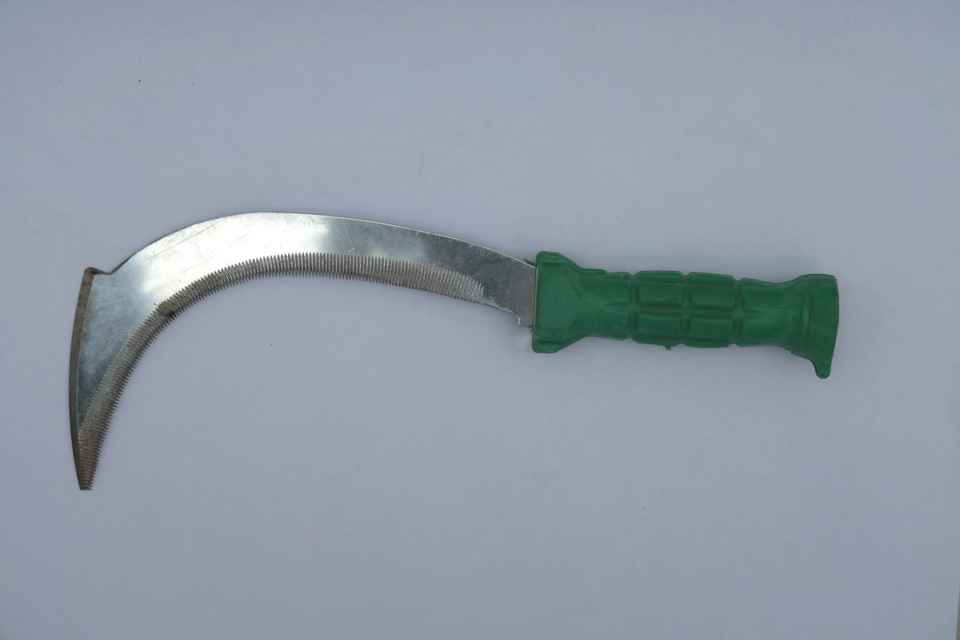 Faucille agricole arabe du Moyen-Orient avec lame de 11 pouces, manche en plastique et bois, oxyde noir et placage de zinc