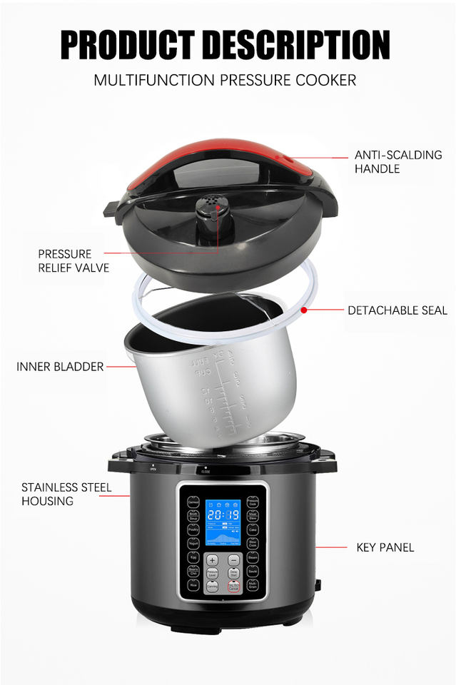 Fonction:Préréglage de Temps de Cuisson, LED D'affichage, Pot avec revêtement anti-adhésif intérieur, Protection contre la surchauffe, Dispositif de décompression, Réglable Réglage de la Pression
