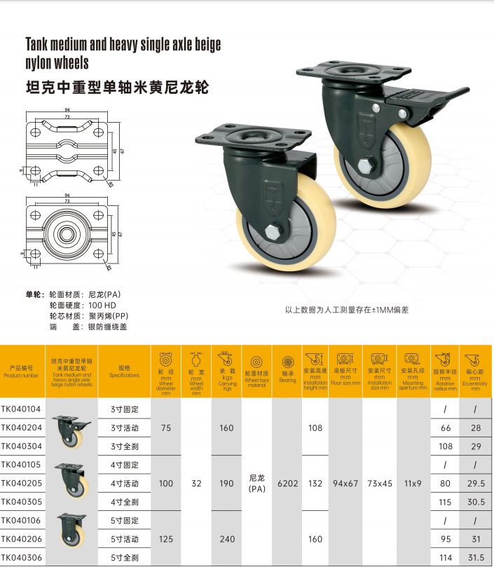 Nom du produit:Roues en nylon beige moyennes et résistantes
