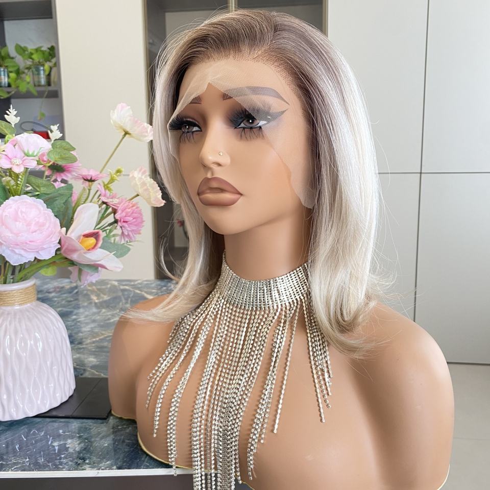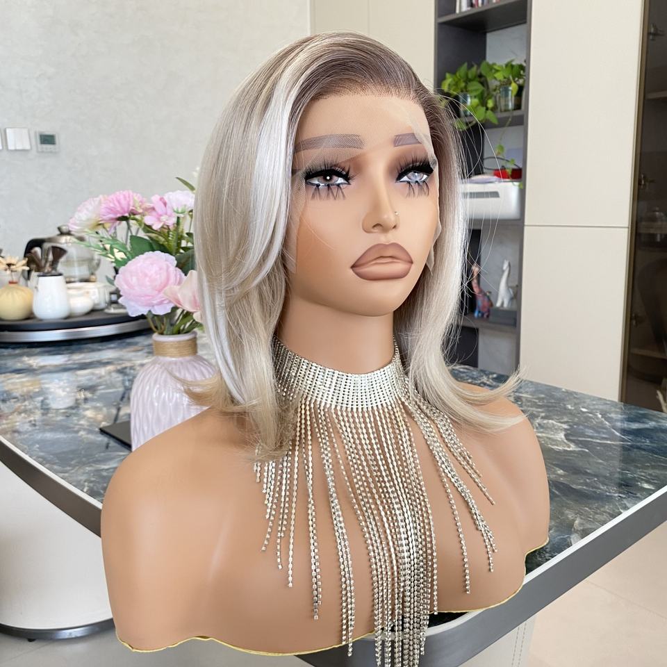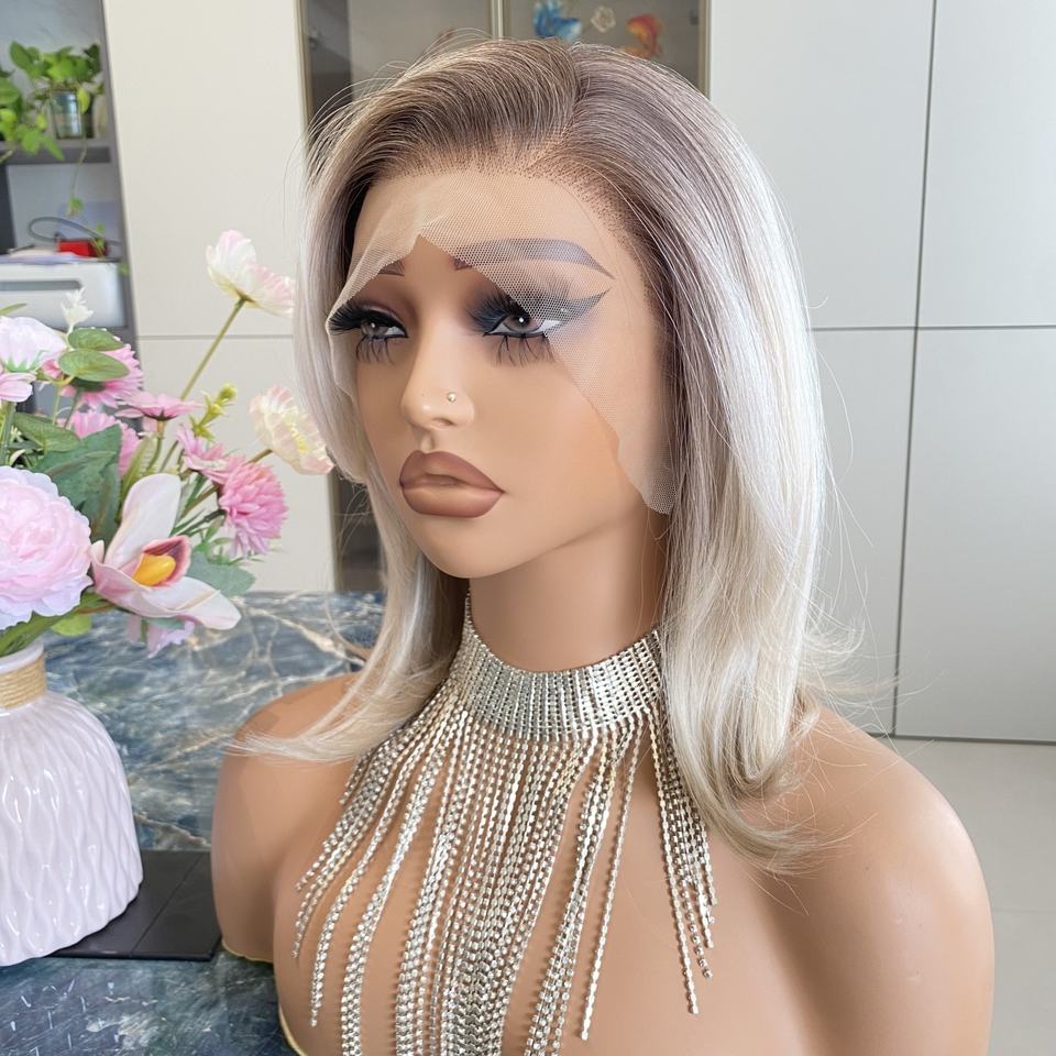 Perruques synthétiques Lace Front 13x4 à raie centrale pour femmes noires, blondes, résistantes à la chaleur, transparentes, courtes, dégradées, aspect naturel