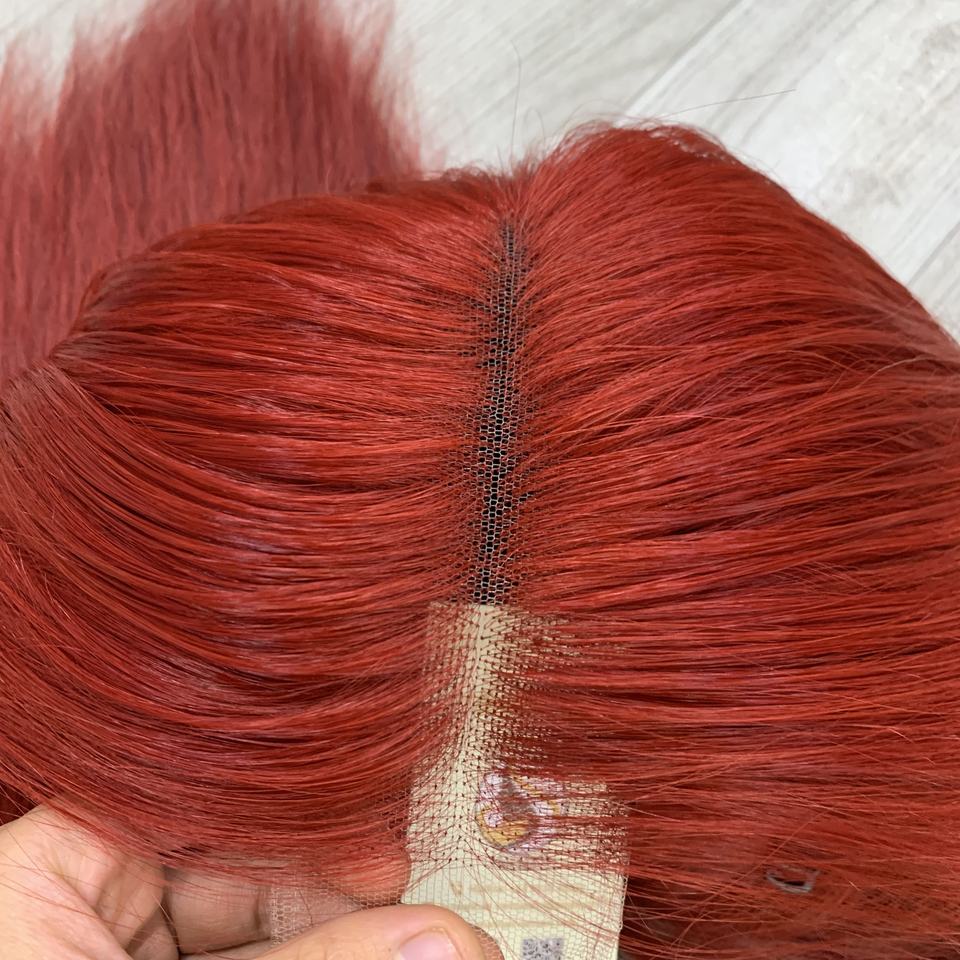 Perruque en cheveux humains couleur rouge bordeaux avec raie au milieu, fermeture en dentelle HD, cheveux vietnamiens bruts, lisses naturels, perruque suisse