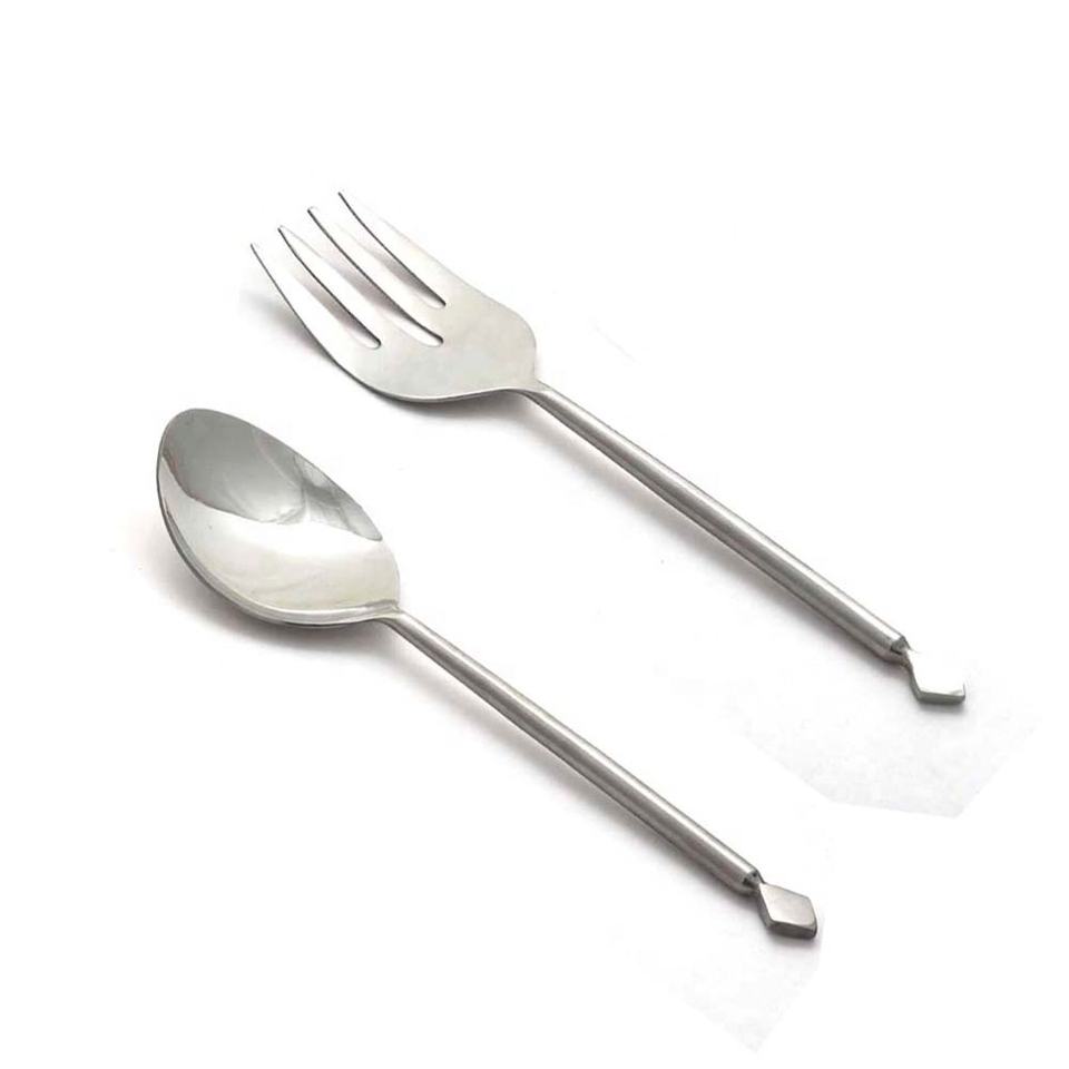 Twist moyen avec poignée d'extrémité nouée Design ensemble de service à salade en acier inoxydable sans danger pour les aliments plaqué argent