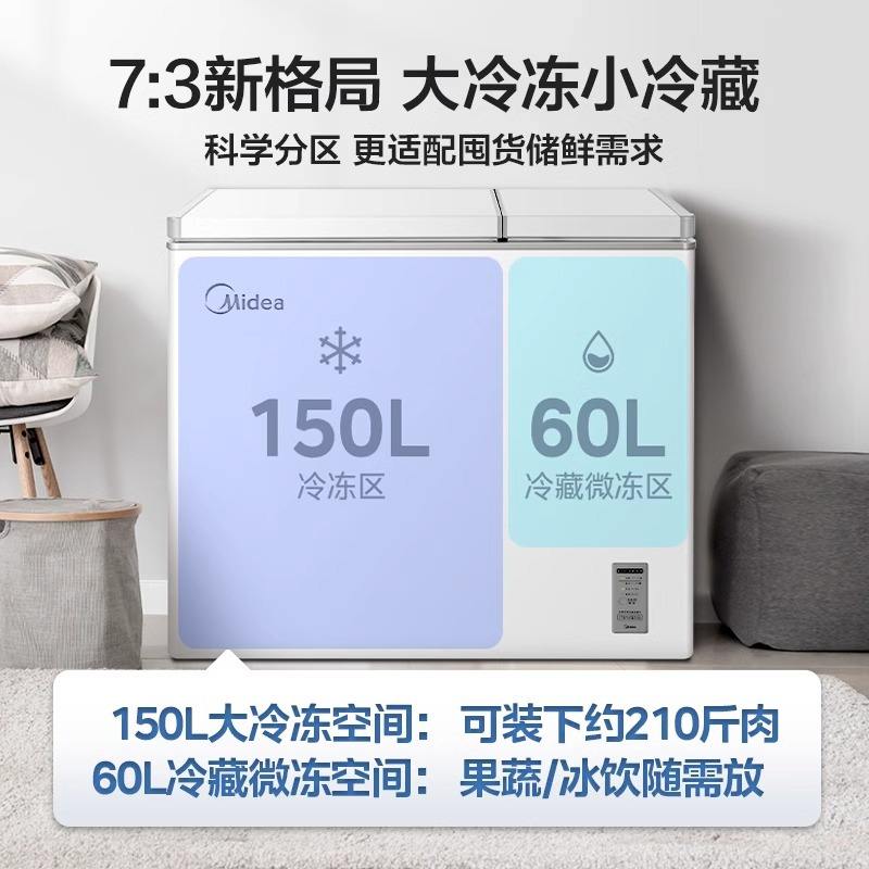 Mini-réfrigérateur Midea 210L à double température, économe en énergie, horizontal, à ouverture par le haut, compact, pour usage domestique et commercial