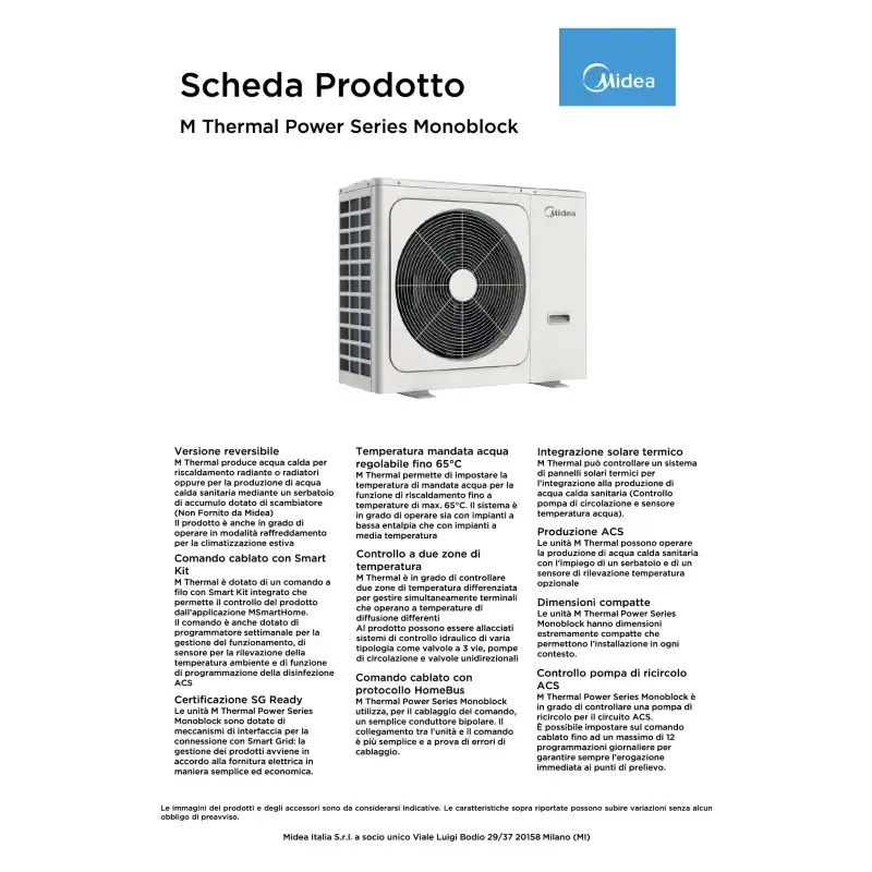 Pompe à chaleur monobloc mini-refroidisseur Midea 7 kW Inverter A+++ pour système CVC domestique, modèle MHC-V7WD2N8-C