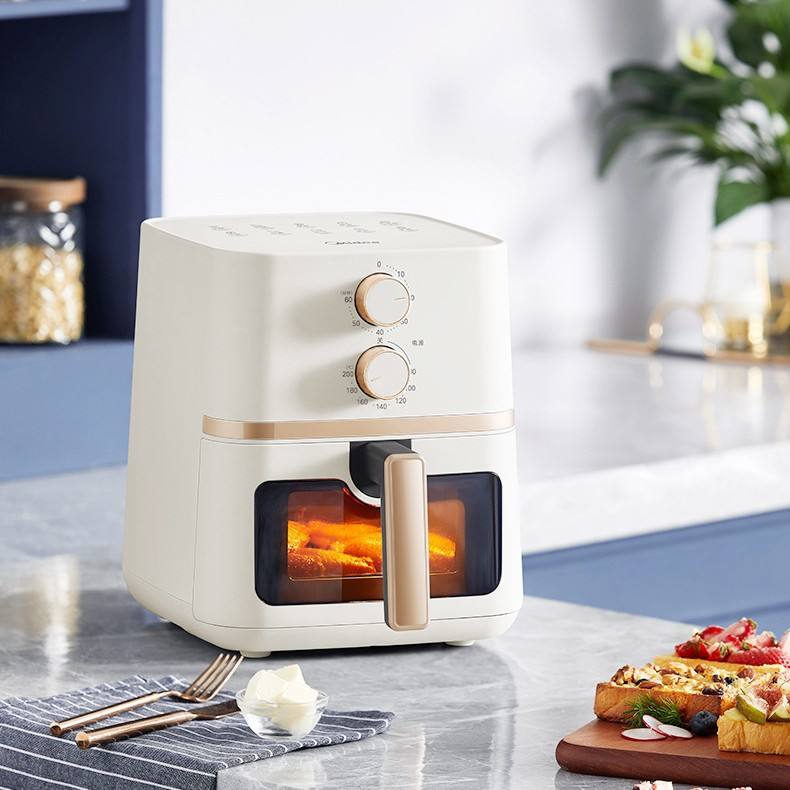 Friteuse à air Midea 4L carrée électrique avec affichage visuel et revêtement céramique blanc