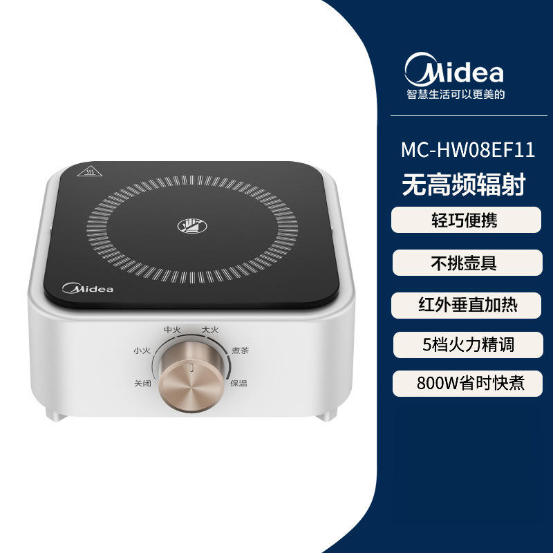 Mini-cuisinière électrique en céramique Midea multifonctionnelle avec fonction de maintien au chaud, blanche, 1 brûleur, commande par bouton