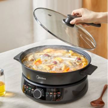 Midea Marmite Électrique Multifonctionnelle 4,5L Type Séparé avec Revêtement Antiadhésif Gris Titane Design Rond Certifiée 3C