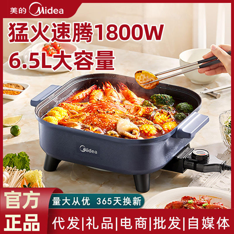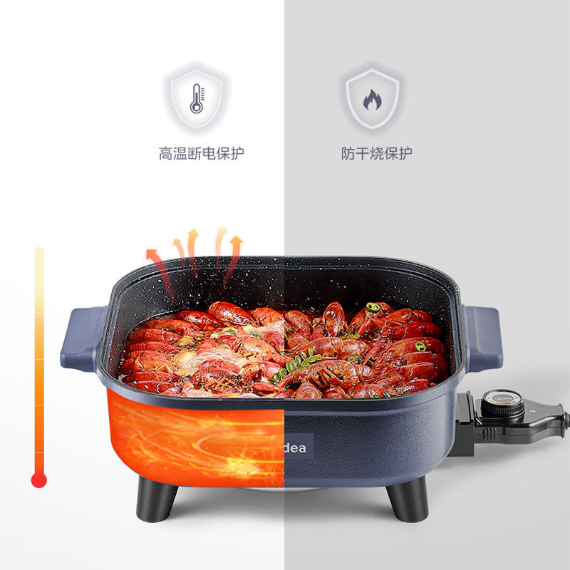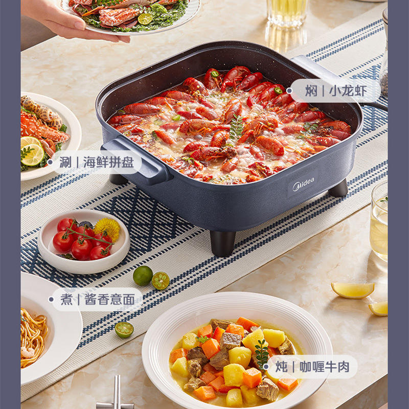 Casserole électrique Midea 6,5 L, cuiseur multifonctionnel, couleur bleue, usage domestique