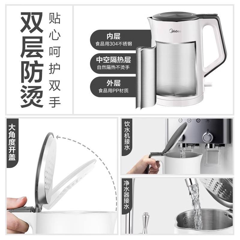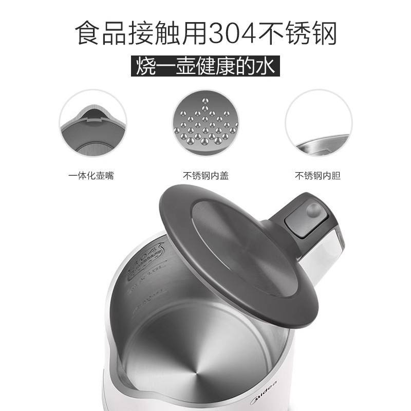 Bouilloire électrique Midea 1,5 L en acier inoxydable 304 de qualité alimentaire, chauffage rapide, sécurisée avec protection contre la surchauffe