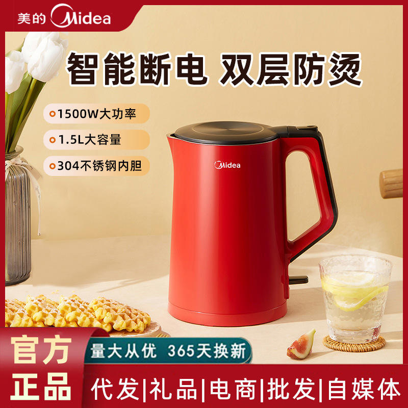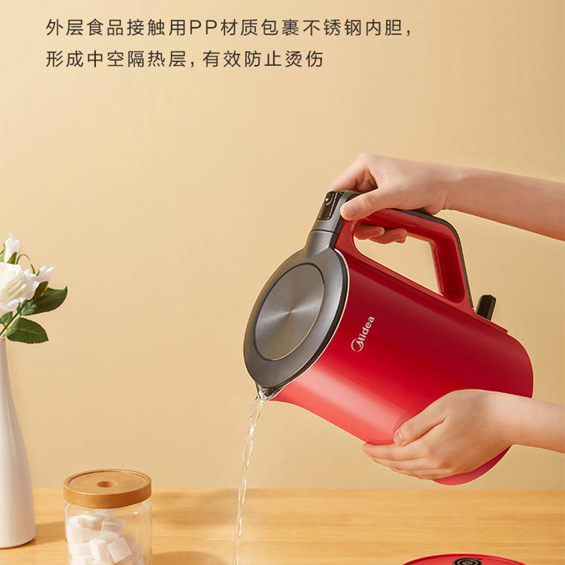 Bouilloire électrique Midea 1,5 L, boîtier en plastique, ébullition rapide, base rotative à 360 degrés, usage domestique
