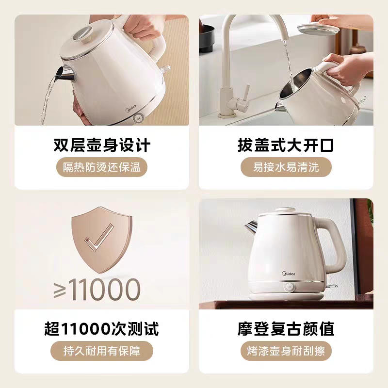 Bouilloire électrique Midea 1,8 L grande capacité, arrêt automatique, maintien au chaud, usage domestique