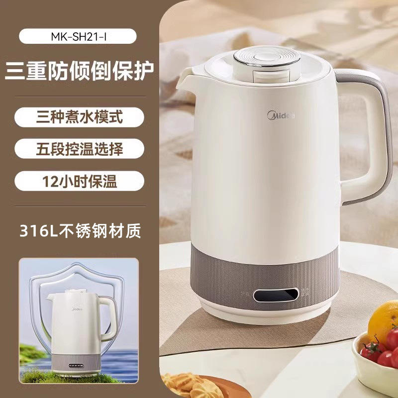 Bouilloire électrique Midea avec contrôle de la température 234X161X279mm, arrêt automatique, utilisation domestique sécurisée