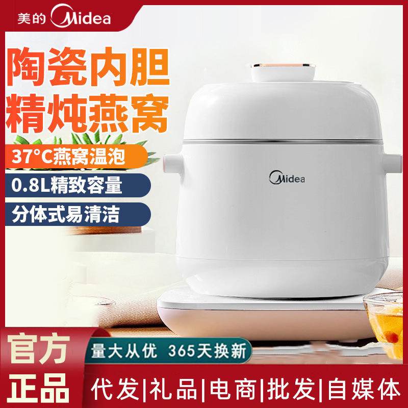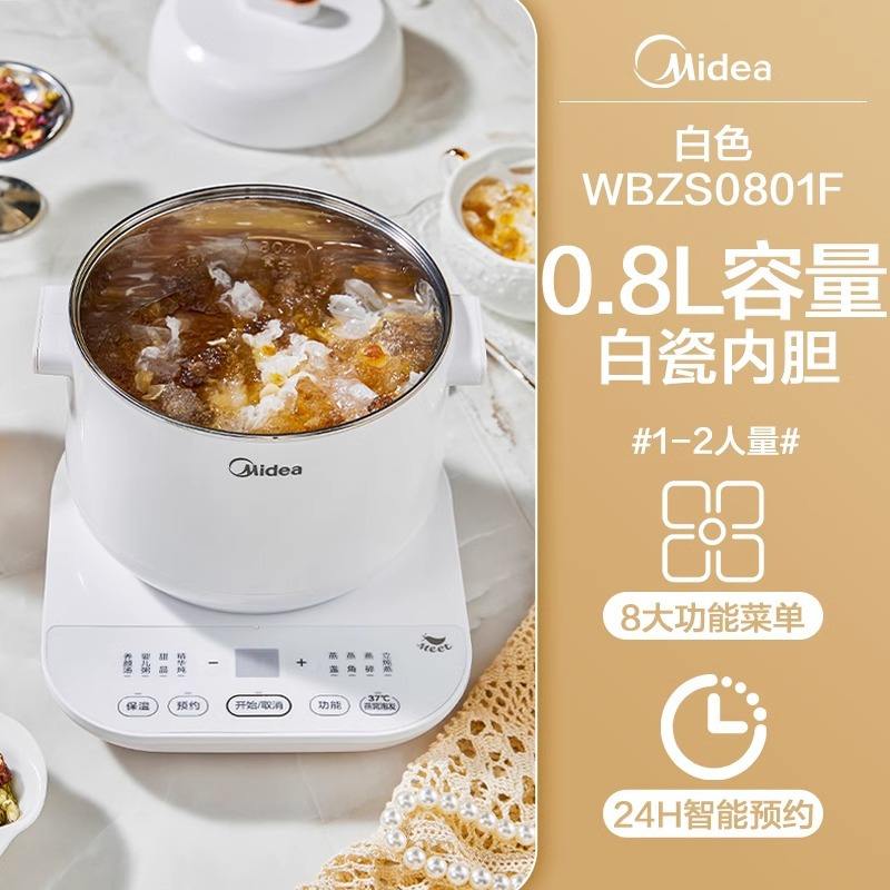 Midea – marmite électrique multifonction de 0,8 l, pour soupe, bouillie, nid d'oiseau, blanc