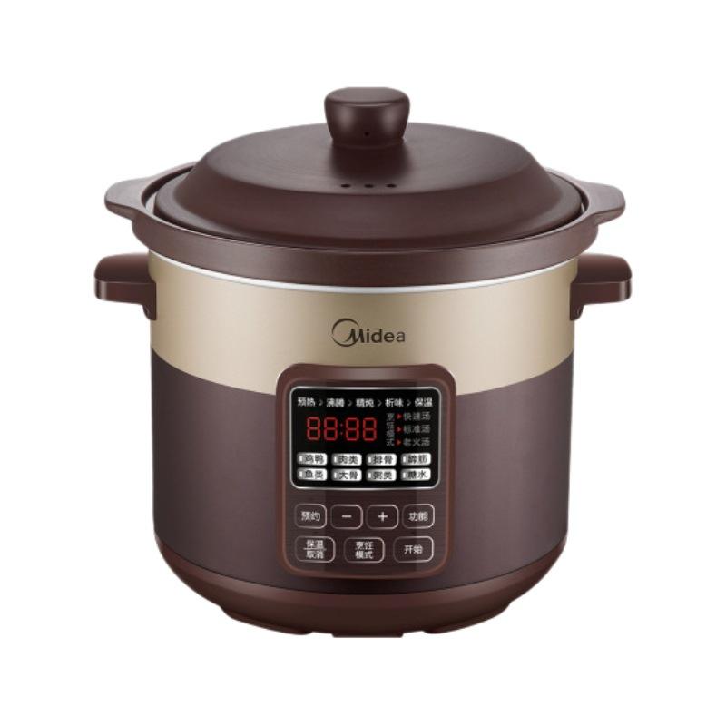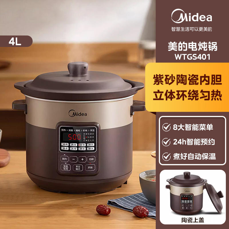 Cuisinière électrique à cuisson lente Midea 4L avec cuve intérieure en céramique, intelligente et automatique, pour soupes et bouillies, usage domestique
