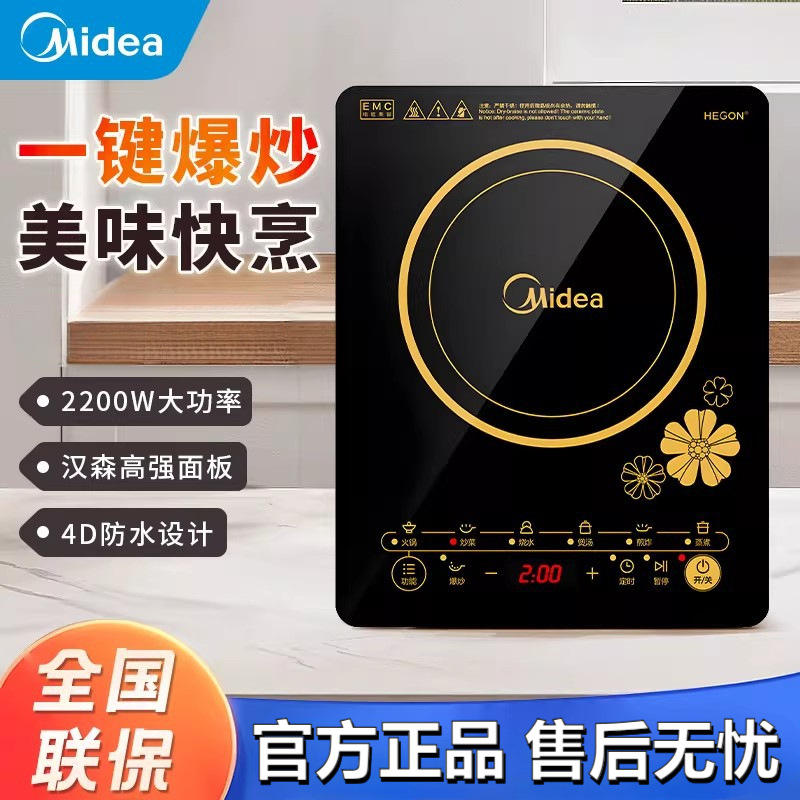 Table de cuisson à induction Midea 2200W, plaque vitrocéramique à écran tactile, cuisinière électrique domestique à brûleur unique