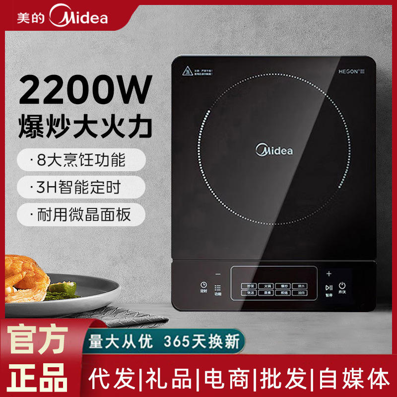 Table de cuisson à induction Midea, un seul brûleur, commande tactile, panneau en verre noir, cuisinière électrique pour la cuisine à domicile