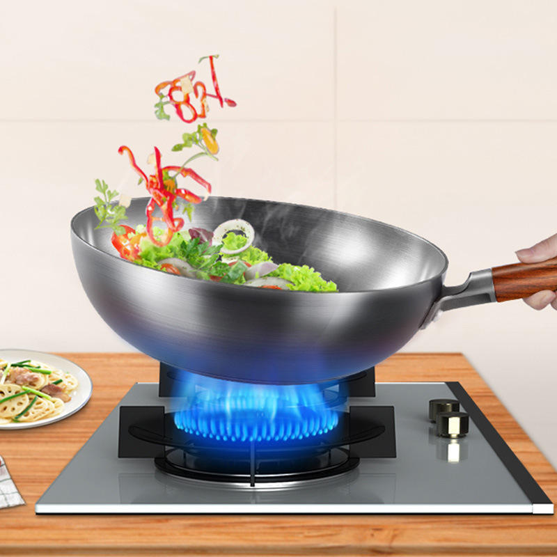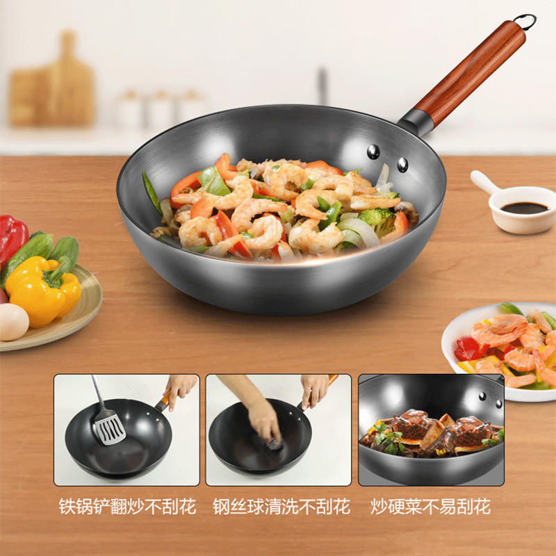 Poêle à frire Midea Iron Wok 32 cm, non revêtue, résistante à la rouille, pour cuisinières à gaz et à induction