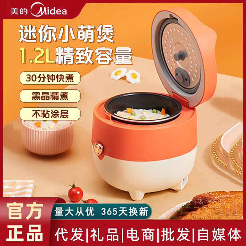 Mini cuiseur à riz Midea 3L, boîtier en plastique en forme de tambour, électrique multifonction, couleur orange, pour 1 à 3 personnes