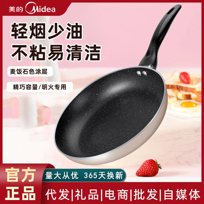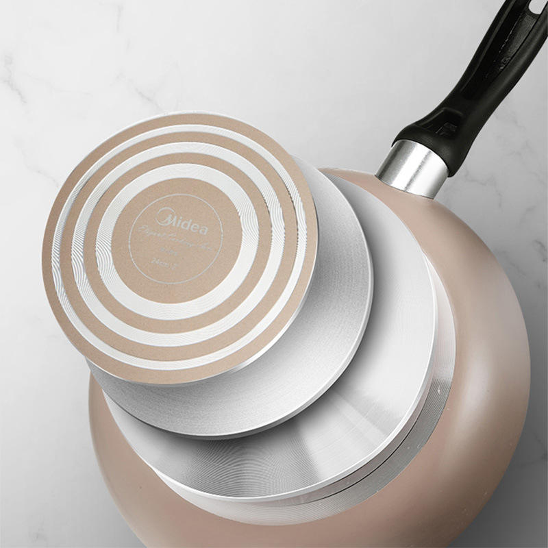Poêle à frire antiadhésive Midea 30 cm ronde avec revêtement doré pour cuisinières à gaz, lavage à la main uniquement