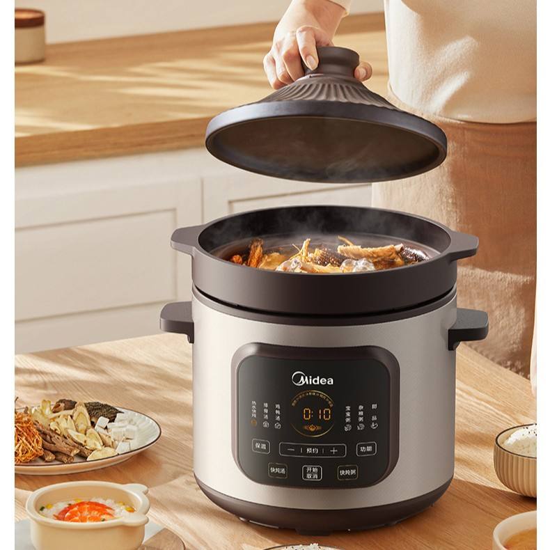 Midea – marmite à cuisson lente programmable, 6l, multifonctionnelle, pour soupes, bouillies et plats, marron