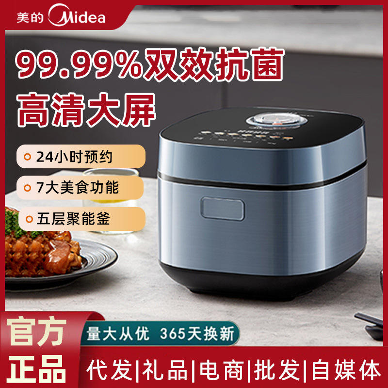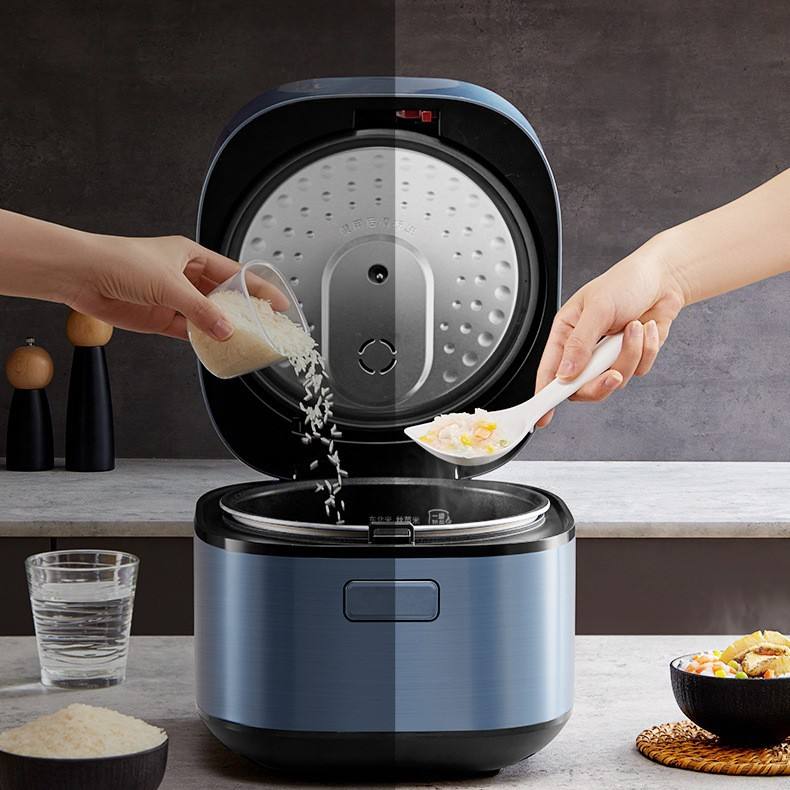 Cuisinière à riz Midea 3L, forme de tambour bleue, minuterie intelligente, pot antiadhésif, boîtier en acier inoxydable électrique