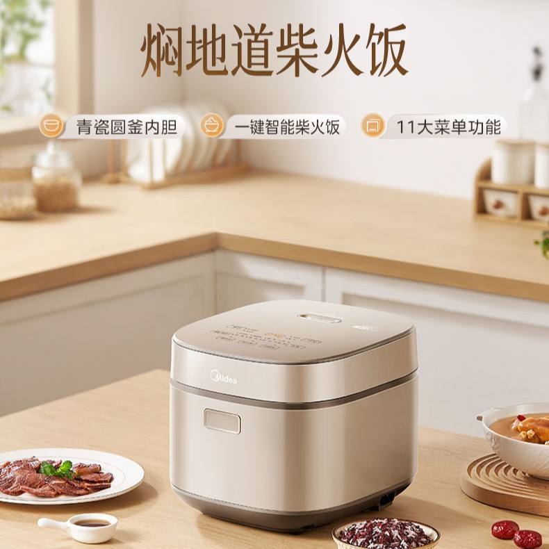 Cuiseur à riz Midea 4L carré en acier inoxydable avec minuterie intelligente et revêtement antiadhésif pour la maison et les dortoirs