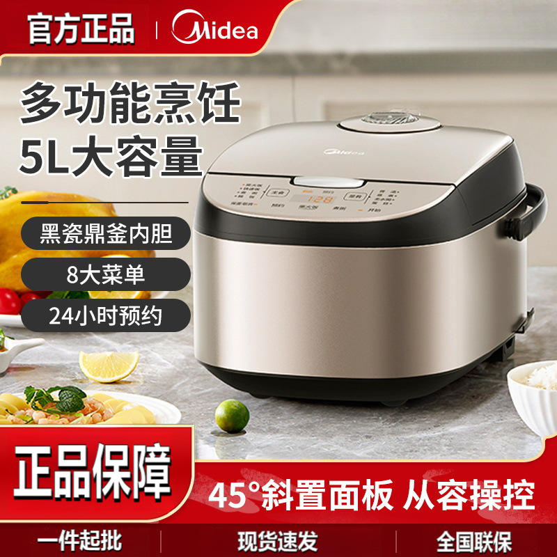 Cuisinière à riz Midea 5L en acier inoxydable intelligente avec couvercle amovible et minuteur 24h pour un riz et des repas parfaits