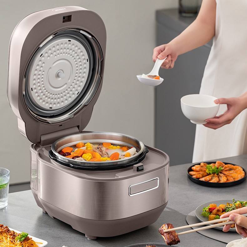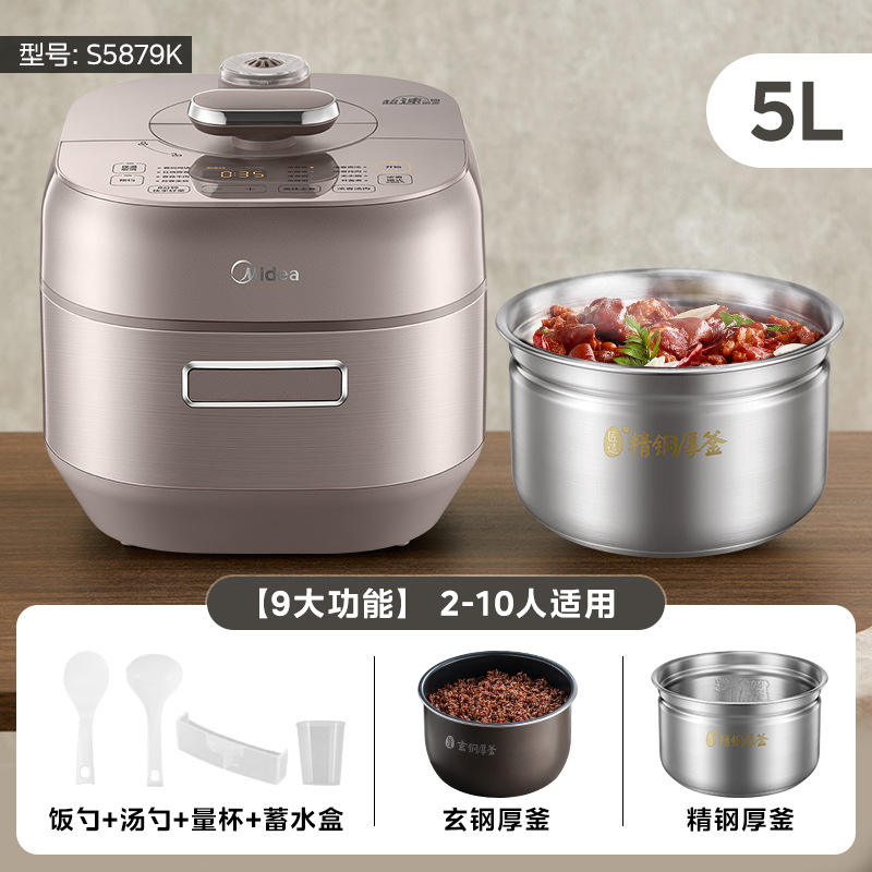 Cuisinière à pression électrique intelligente Midea 5L en acier inoxydable avec double cuve intérieure, contrôle par micro-ordinateur, cuiseur à riz multifonctionnel