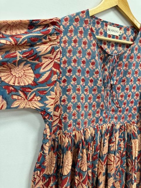 Robe mi-longue, mini robe, robe longue à imprimé bloc floral, col profond avec ficelle plus proche robe longue à la main