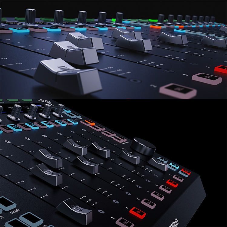 Mot-clé:Console de mixage avec séquenceur à huit canaux, faders motorisés tactiles et contrôle de mixage.