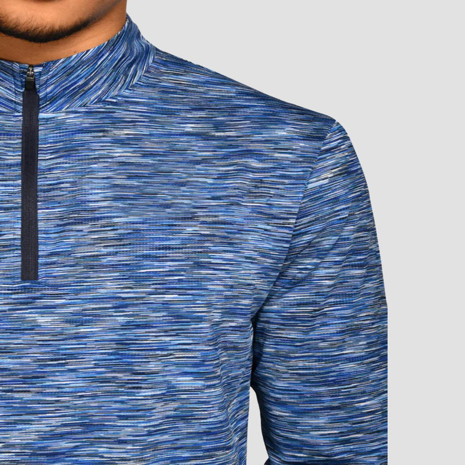 Compagnon de la piste bleu nuit: Chemise à manches longues à fermeture éclair 1/4 avec logo réfléchissant pour homme-Léger, respirant 88% polyester