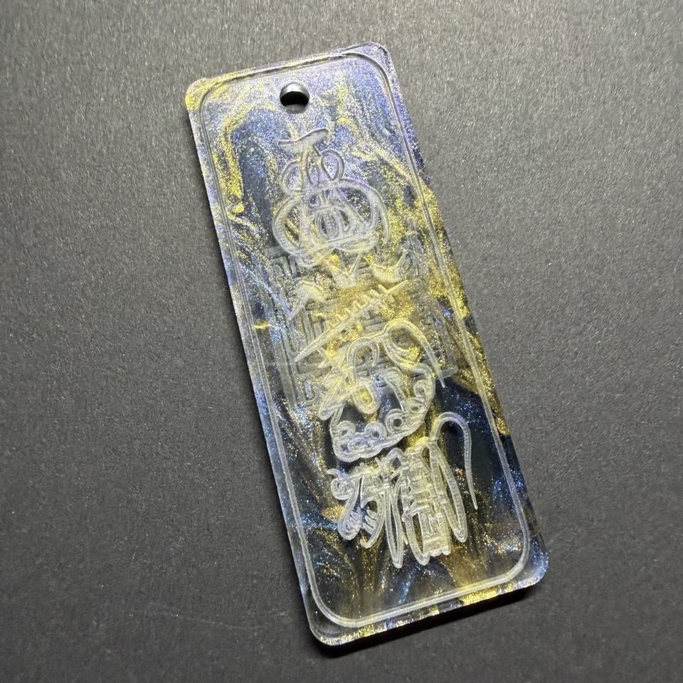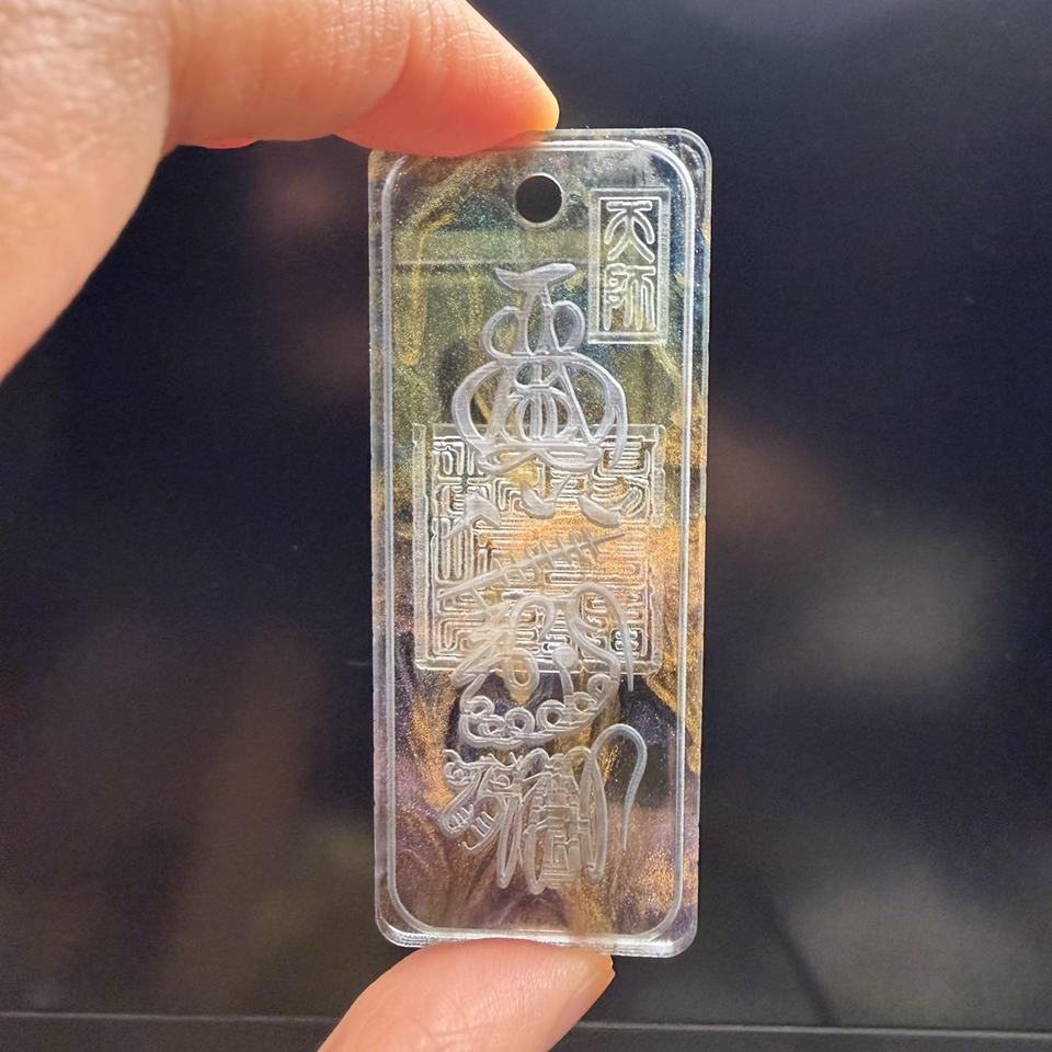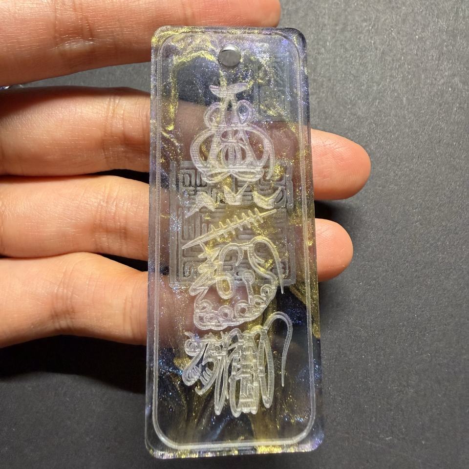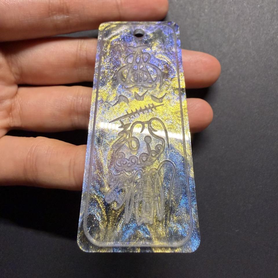 Talisman Galaxie Nocturne en Acrylique Noir Translucide avec des reflets Tricolores Or, Bleu et Violet pour une Protection et une Terrestrisation Ultimes