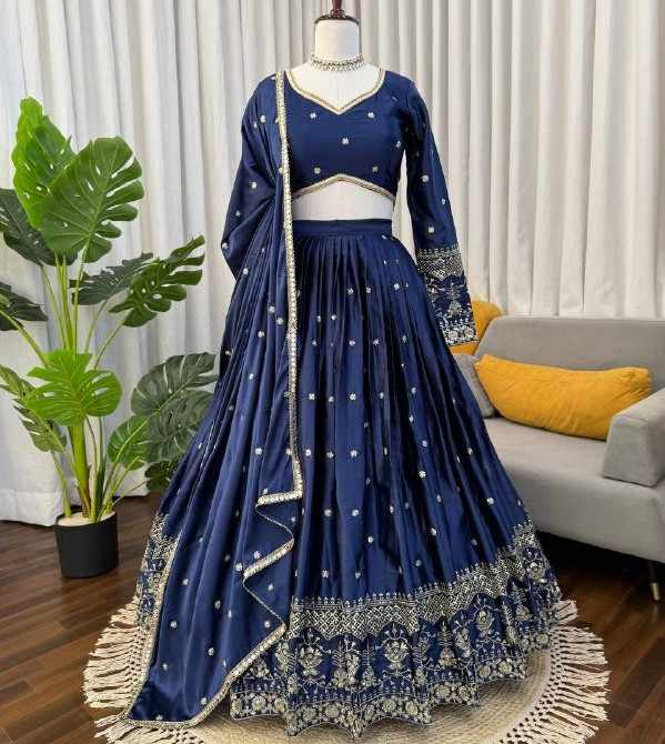 Ensemble Lehenga Choli bleu marine royal brodé lourd pour mariage et tenue de soirée