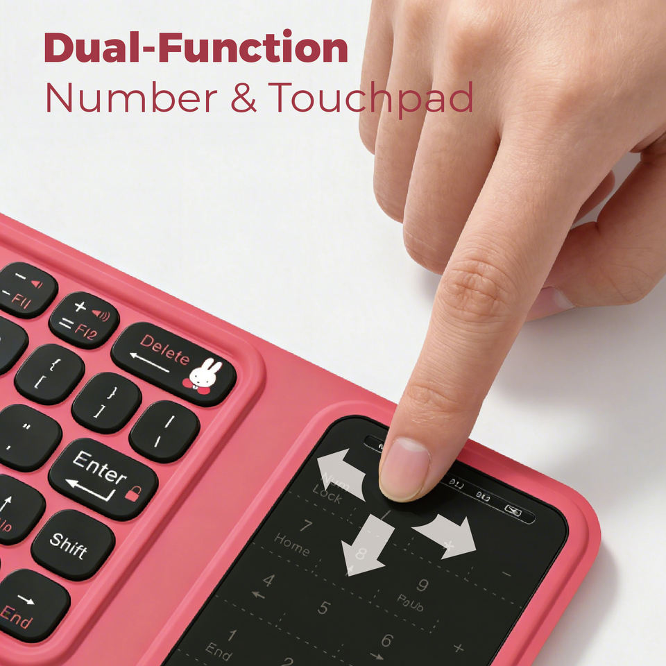 Clavier Bluetooth triple pliage Miffy, clavier sans fil, clavier portable et pliable pour iPad iPhone avec pavé tactile