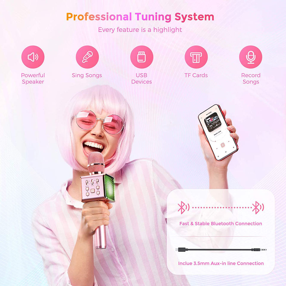 Microphone sans fil portable pour karaoké facile avec haut-parleur, enregistrement musical, KTV, LED, micro pour téléphone portable