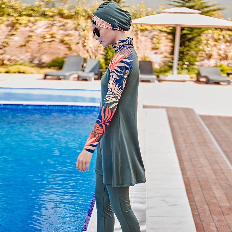 Les maillots de bain islamiques doux et conservateurs avec des impressions numériques arabes peuvent être personnalisés pour les maillots de bain musulmans pour femmes