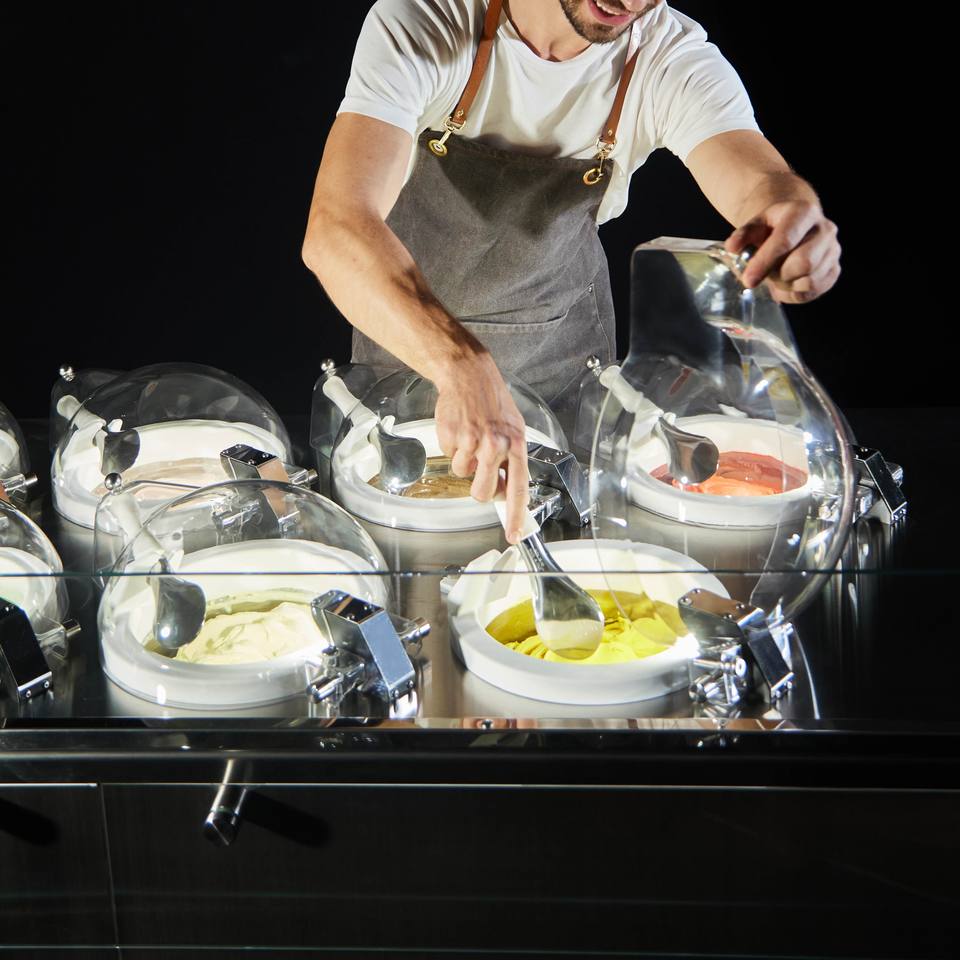 Fabrication, présentation, stockage et service direct de gelato